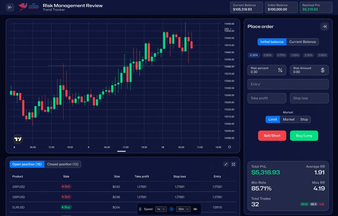 Customize your simulations to match your specific trading style and preferences.
