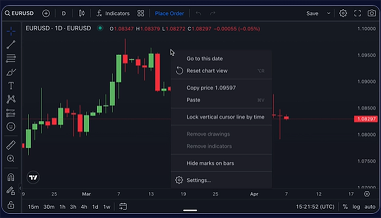 Rewind time with ease using our intuitive backtest tool. Simply right-click on any point in the chart and select “Go back to date” to instantly jump to your desired historical moment. Explore past market conditions and gain valuable insights into how your trading system would have performed in different scenarios.”