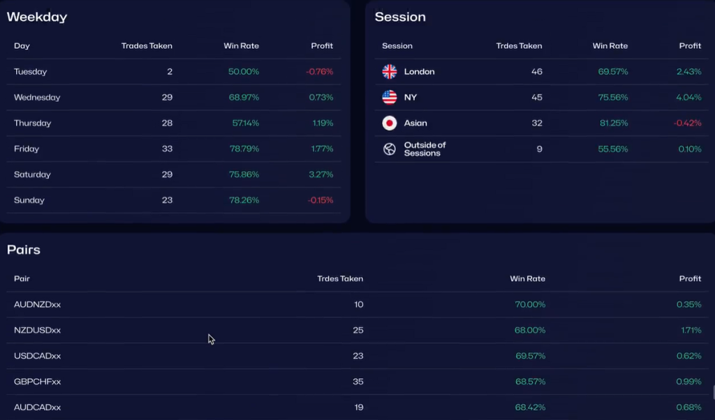 You’re one click away from discovering during which days Your Strategy Works best. Make data driven decisions on when to trade based on MTJ analytics