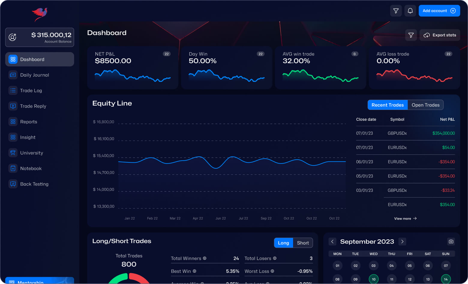 Our powerful tools provide you with a comprehensive overview of your trading performance. Gain valuable insights into your strategies, optimize your approach, and make data-driven decisions to improve your trading outcomes.